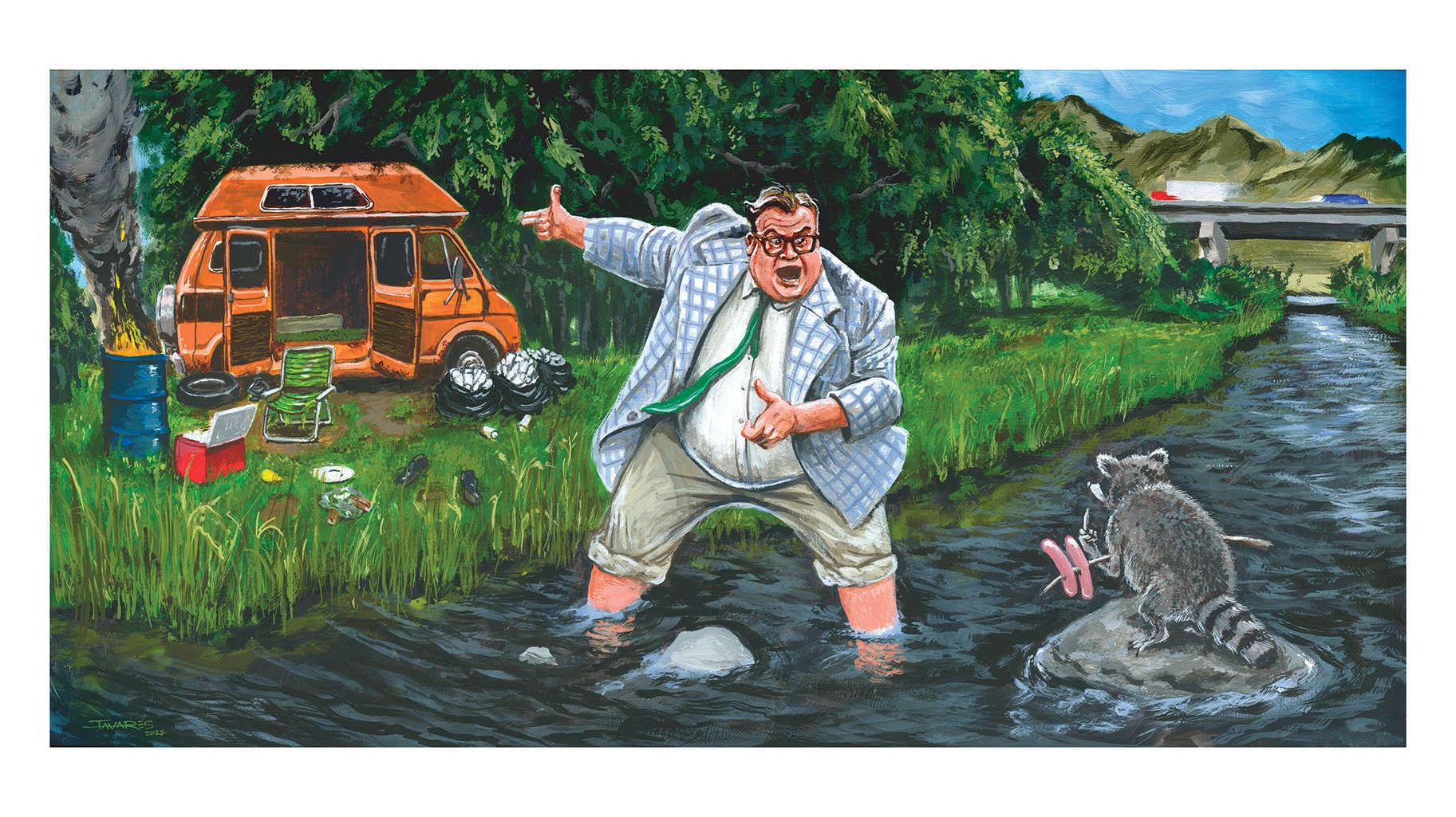This is a print of my Chris Farley (as his character "Matt Foley") inspired painting for the 2022 "The Good Die Young" show at the SugarMynt Gallery in Pasadena, CA.